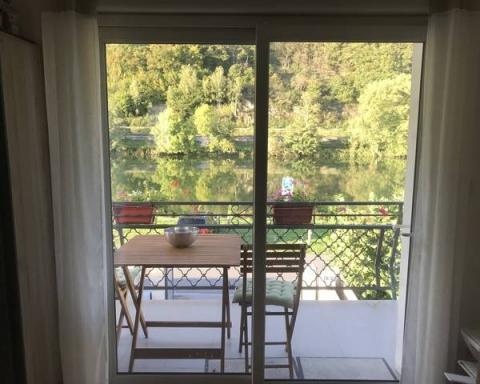 Vanuit de keuken, woonkamer & balkon direct zicht op de Maas .